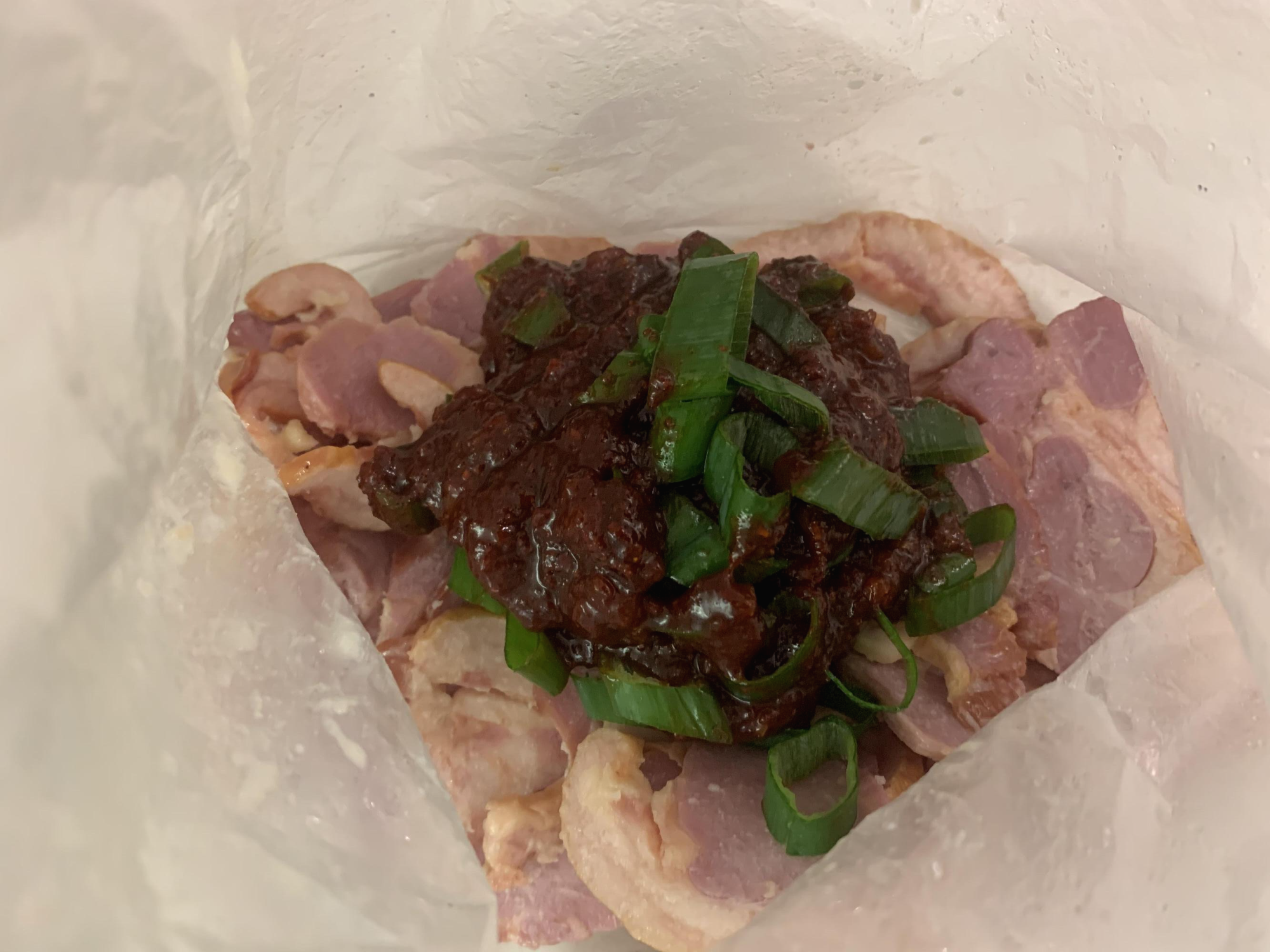 커다란 비닐에 훈제오리를 넣고