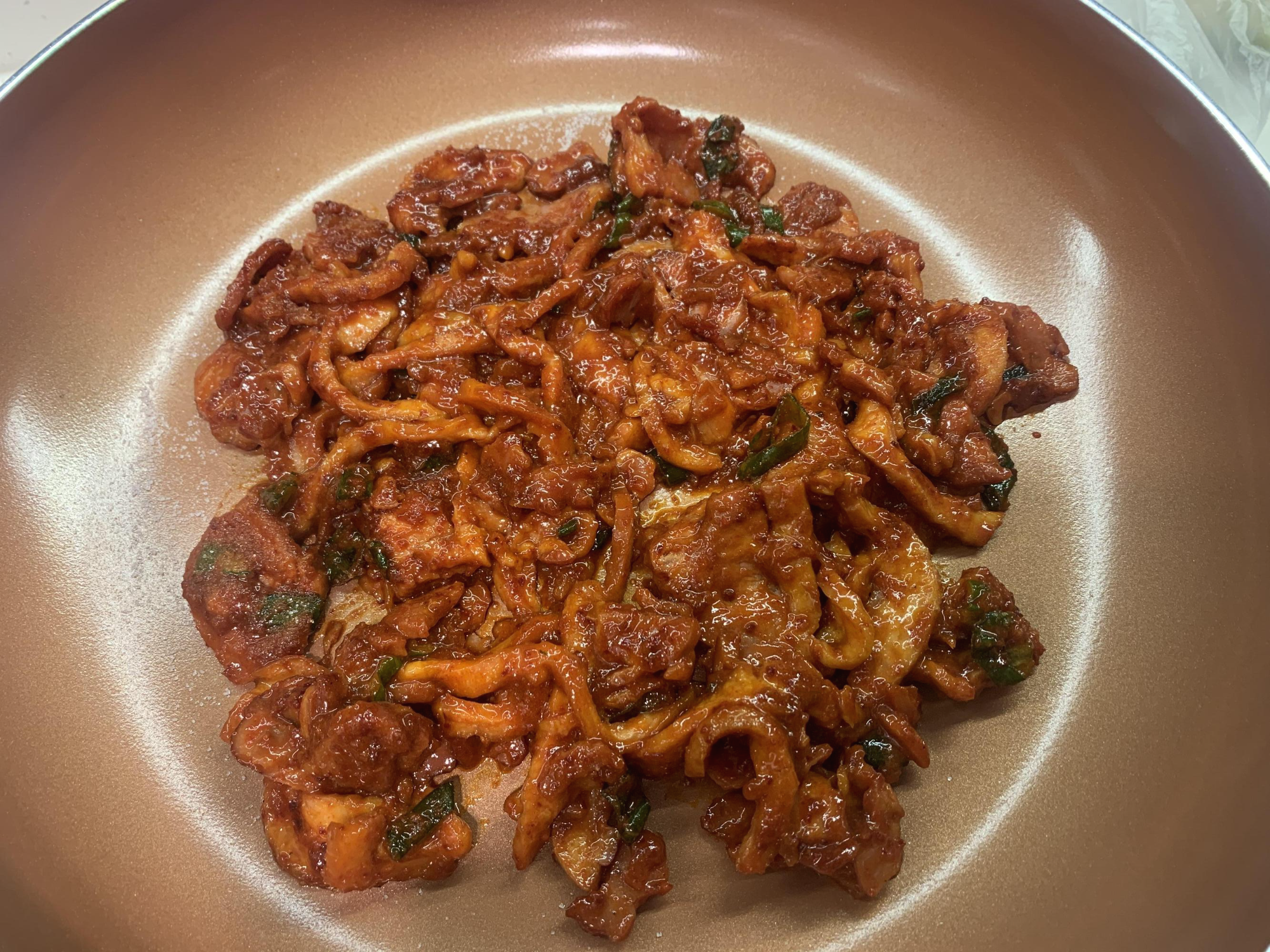 5. 달궈진 팬에 주물럭을 올려 볶아주세요